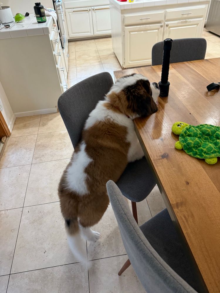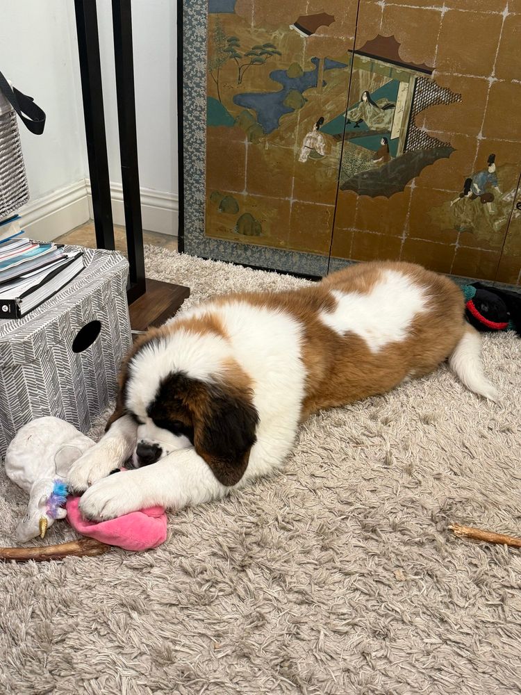 My #stbernard Magnus is 16 weeks old today. Already weighing in at a svelte 47 pounds.