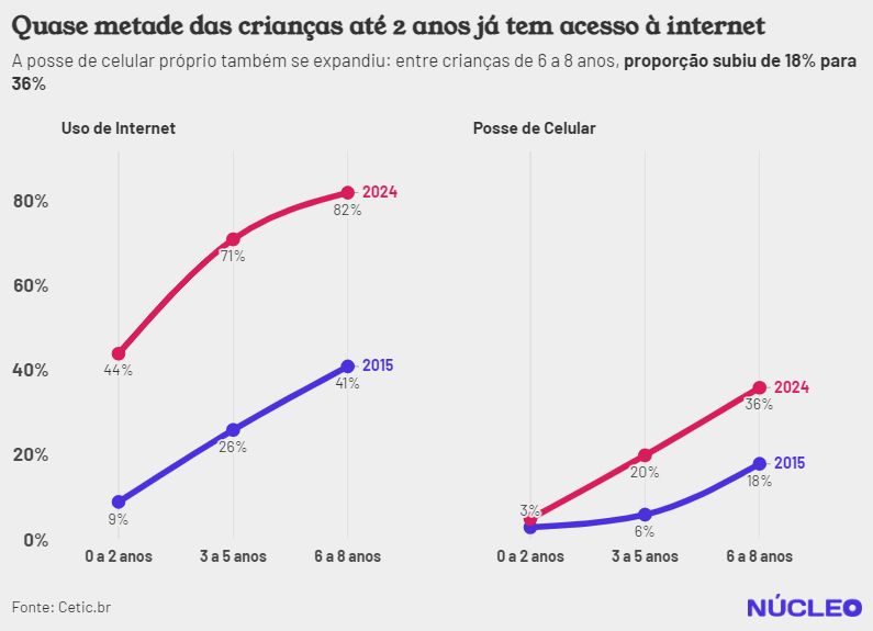 Em 2024, 44% das crianças de até 2 anos têm acesso à rede, contra apenas 9% em 2015, segundo nova pesquisa