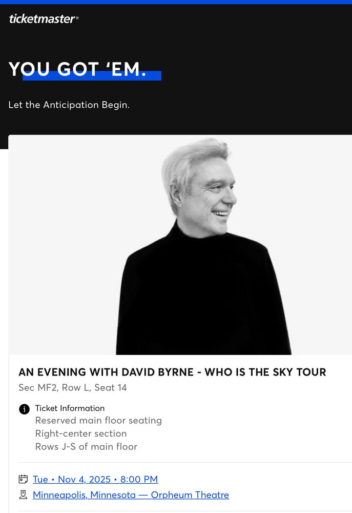 If you have the means, absolutely recommend you look for a ticket for David Byrne’s second night at the Orpheum in Mpls tomorrow. It was every bit as great as the 2018 tour and then some. Easily one of the best shows you’ll ever see.