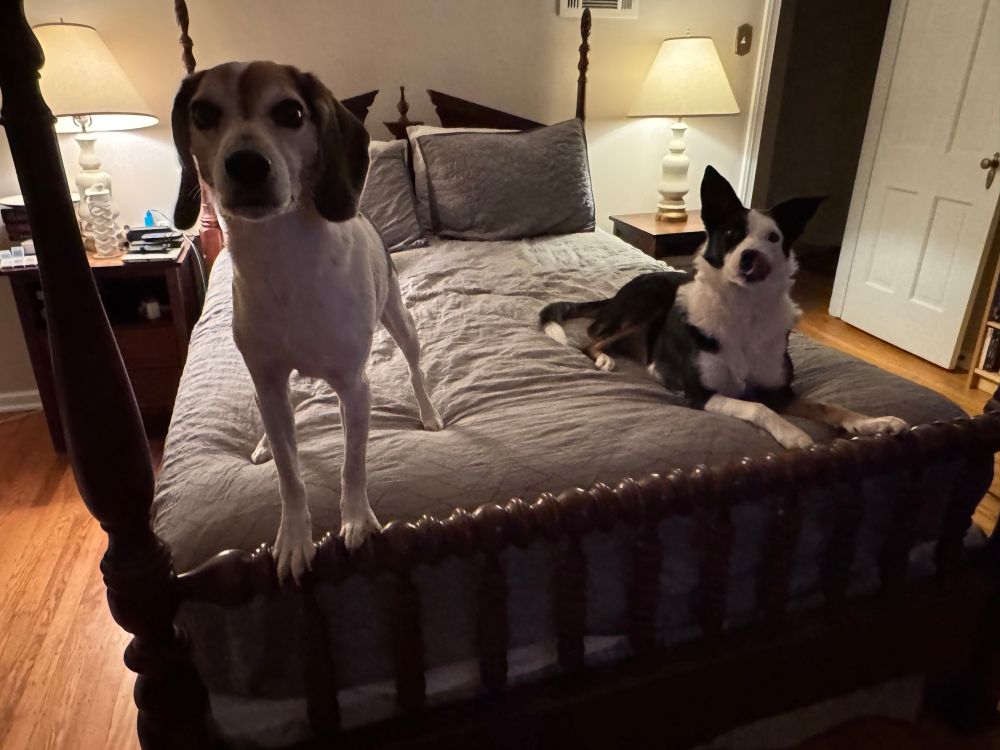 In my defense, I sing to them a lot, and the next frame is the beagle considering howling along.