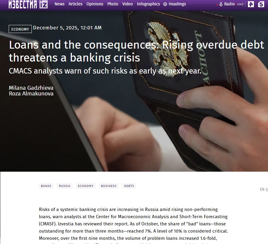 The Russian economy is rapidly losing stability, and external injections are no longer able to fix systemic problems. An economic crisis in the Russian Federation is only a matter of time