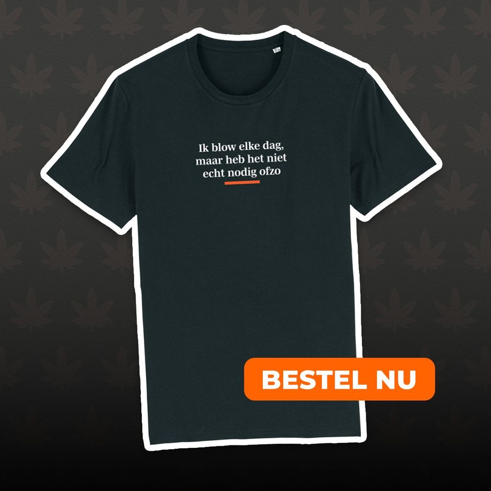 Leuk om als cadeau te geven aan die vriend of vriendin die elke dag blowt, maar het niet echt nodig heeft ofzo. Bestel 'm hier: https://shop.speld.nl/products/shirt-ik-blow-elke-dag-maar-heb-het-niet-echt-nodig-ofzo-de-speld-bio-katoen