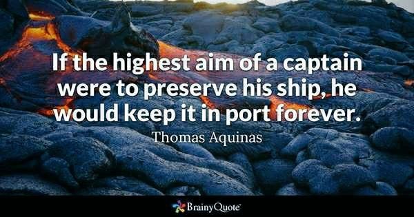 "If the highest aim of a captain were to preserve his ship, he would keep it in port forever." ~Saint Thomas Aquinas