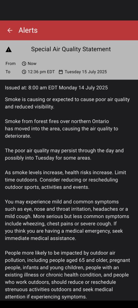 Special Air Quality Statement has been issued for Eastern Ontario #ytr #pec #ygk #xbr #SpecialAirQualityStatement #WildfireSmoke #ONwx #ONStorm