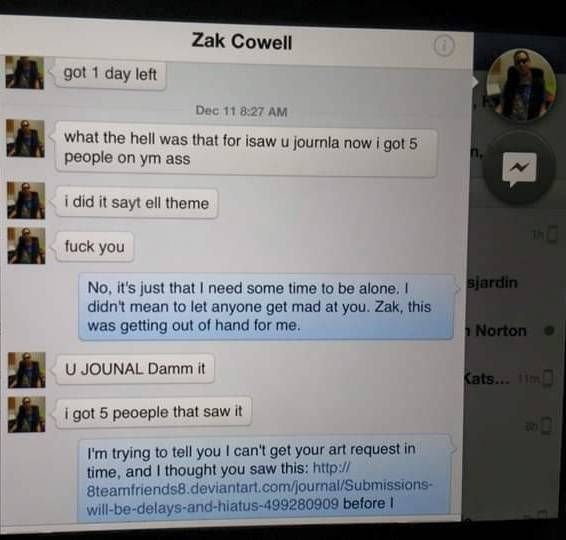 Everyone of #multifandoms , if you see the signs of Zak Cowell? Speaking for everyone's safety, he has to get off the platform and take responsibility. If he's acting up? Ban him off of all sites.