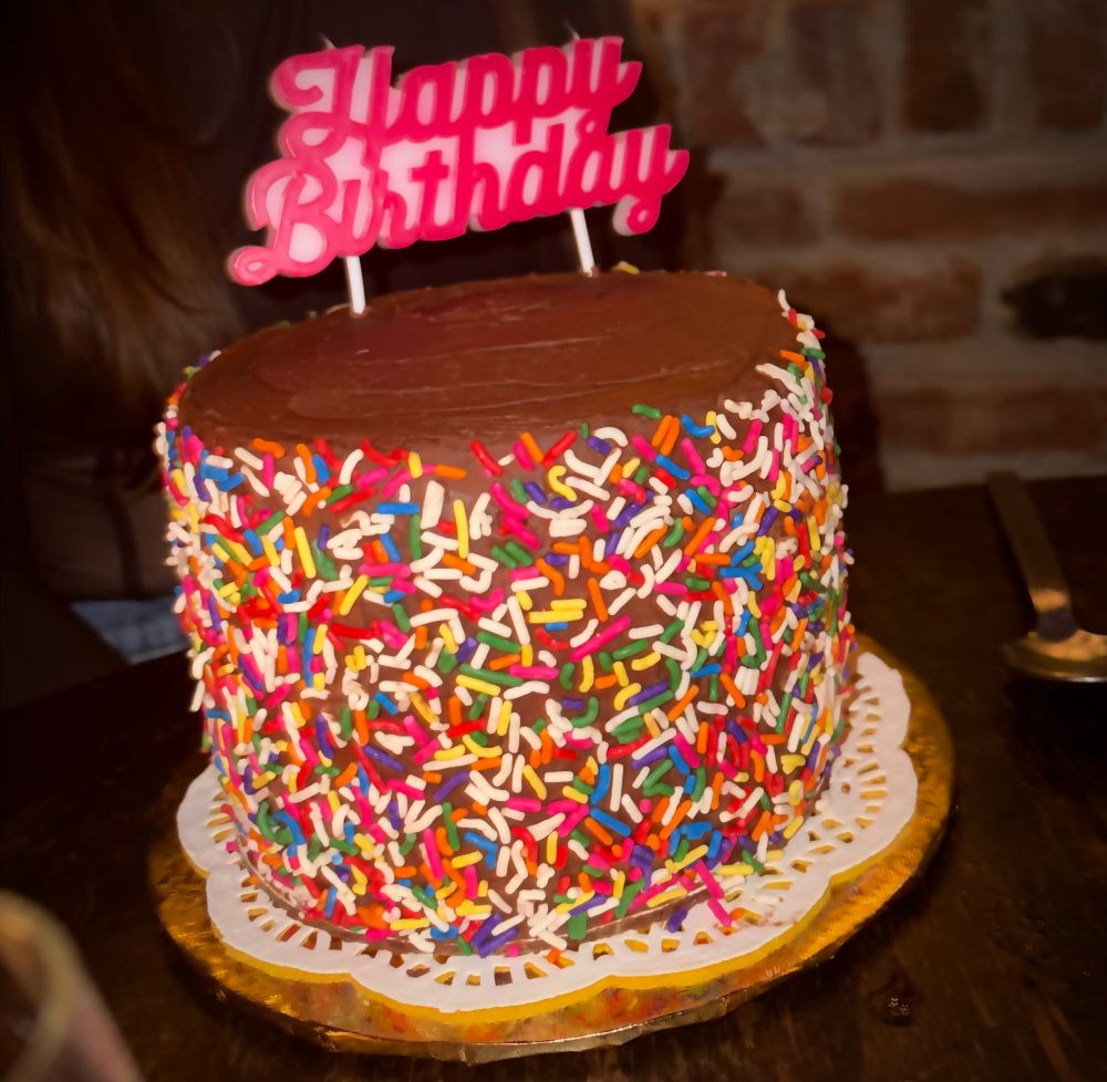 Hazelnut cake, chocolate hazelnut crunch, hazelnut creme mousseline filling, salted milk chocolate buttercream frosting. The restaurant staff asked me where I bought it and I am still riding that (delusional) high.