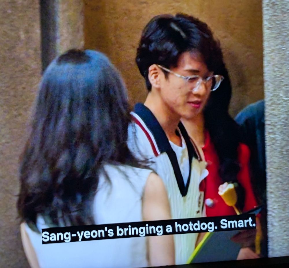 Sang-yeon's bringing a hotdog. Smart.