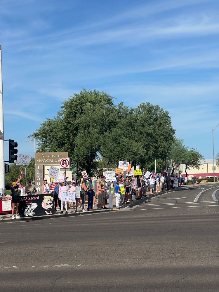 More than 100+ Residents/taxpayers in CD1 showed up in front of Congressman David Schweikert’s office to peacefully protest his acquiescence to F47. Also, believe the women and release the Epstein files and return Ghislaine Maxwell to the prison in which she was originally housed.