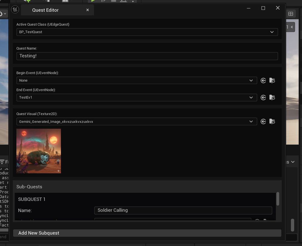 Quest editor is working. Obviously will add more sub quest types as things progress, but it is working for now.