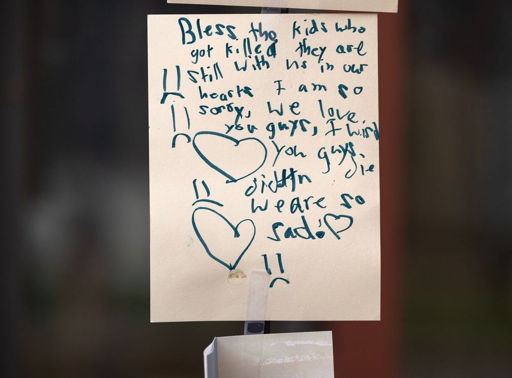 This note was left at a memorial outside Annunciation Church in Minneapolis where two children were killed on Wednesday.