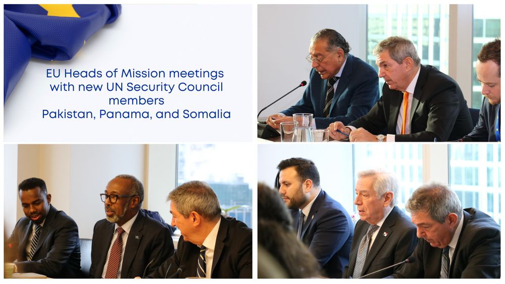 🇪🇺 EU Ambassadors held exchanges with the Perm Reps of 🇵🇰 Pakistan, 🇵🇦 Panama & 🇸🇴 Somalia, to hear their priorities for their 2-year term and to discuss how to strengthen the UN’s work and our collaboration on peace & security.