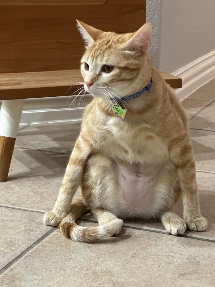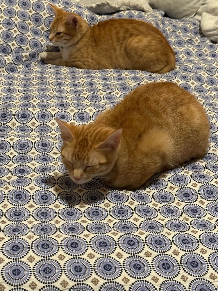 I love my kitties. Their names are Gary (all orange) and Mandarine (white legs). Both are girls.