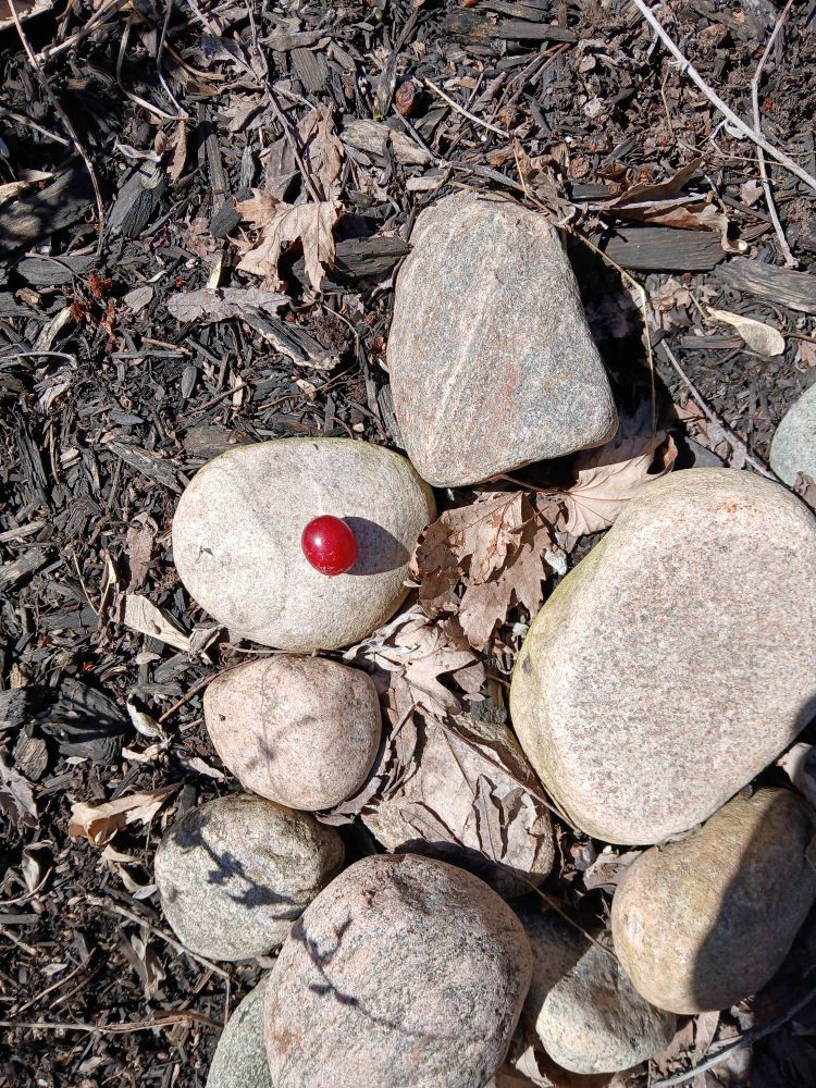 I found a whole, perfect cranberry in the garden among the rocks.