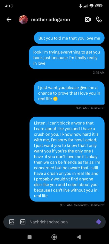 you know what I can never blame my own real life mate because I really still love her no matter what mistakes she makes and I know that I suffer from fear of loss but I still love her and I feel that @femzillahybrid.bsky.social