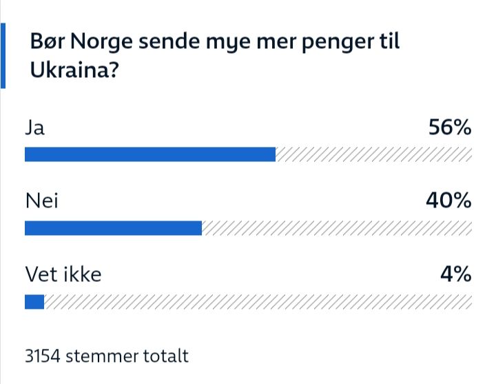 Go to www.nrk.no/debatten/ and vote Ja(Yes) on the question if Norway shall increase the support of Ukraine.