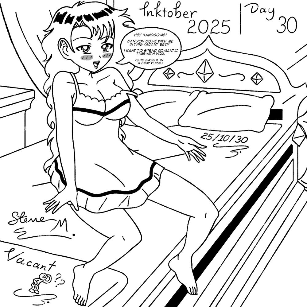 Inktober 2025 | Day 30 | Vacant 😏🛏️🖤👍