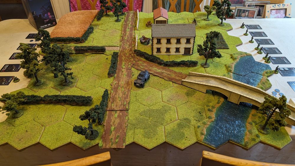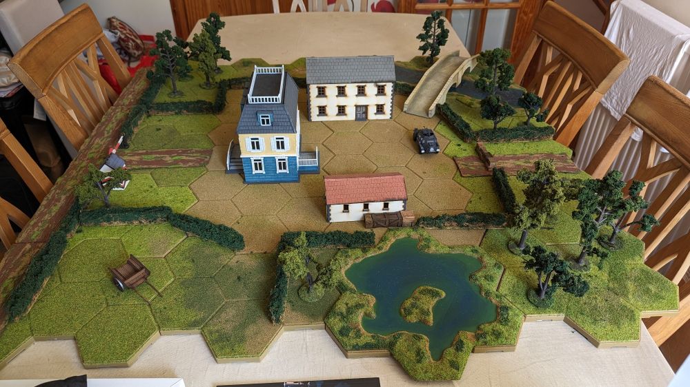 Very excited to run a virtual game of What a Tanker! this evening for a couple of good friends. I love the potential of grabbing stuff out the loft and turning it all into a gaming surface.