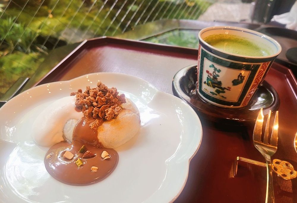 和洋折衷梅ヶ枝餅とお抹茶!全てが調和して最高だったー!