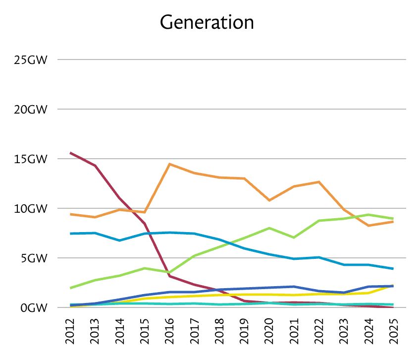 In 2012 when I first put solarPV on my roof, wind and solar generated less than 7% of UK electricity generation. Gas and coal were 69%. So far in 2025, wind and solar have generated 39% of UK demand. Gas (there's no coal) is down to 29%. It's very good to see :-). grid.iamkate.com