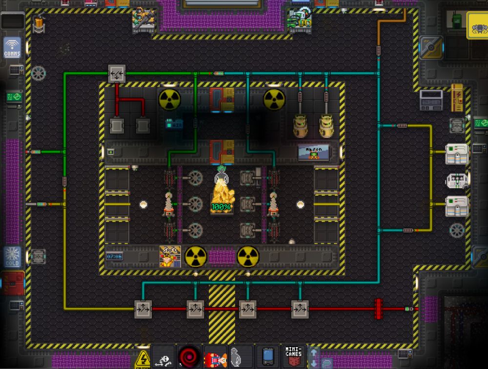 Some service areas. Dorms, designed to look like a upscale hotel. Couples cuddle on a couch next to a fire, watching the snow fall. The bar and library are subject to per-round renovation projects so I made them a little mid on purpose. Makes players feel better when they improve it.