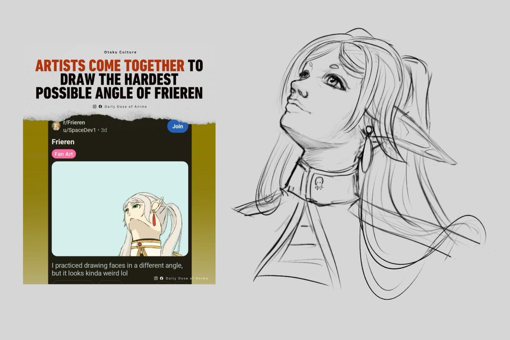 My phoned in attempt of this #frieren meme - sketched in my style in the wrong angle! This is what I get from drawing this angle from memory as opposed to using a photo reference like I should have.