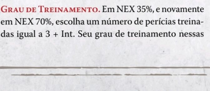 Ficha de ocultista (origem vítima, 25% de Nex, operador, trilha: intuitivo)