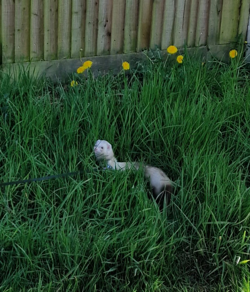 So there may be some new blue tube for the ferrets... This is Custard checking it out as an official tube inspector...