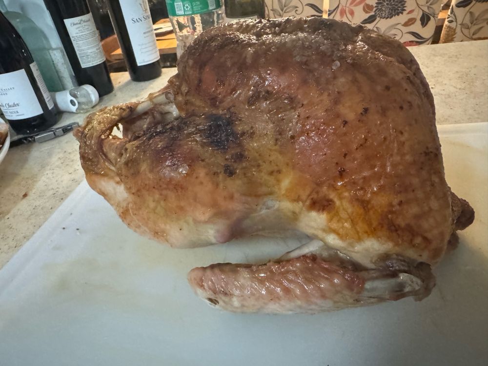 Bourdain stuffing, Brussels, mashed potatoes, gravy and turkey. And for good measure a Traeger smoked turkey. (Traeger won the vote)