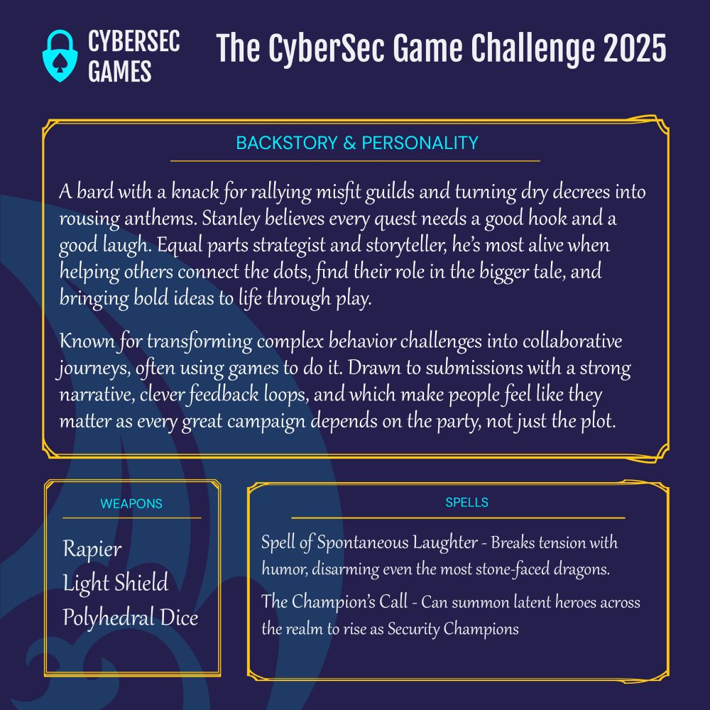 A devoted Dungeons & Dragons fan Stanley Harris is working to inspire security champions to come together and join in an epic quest!
