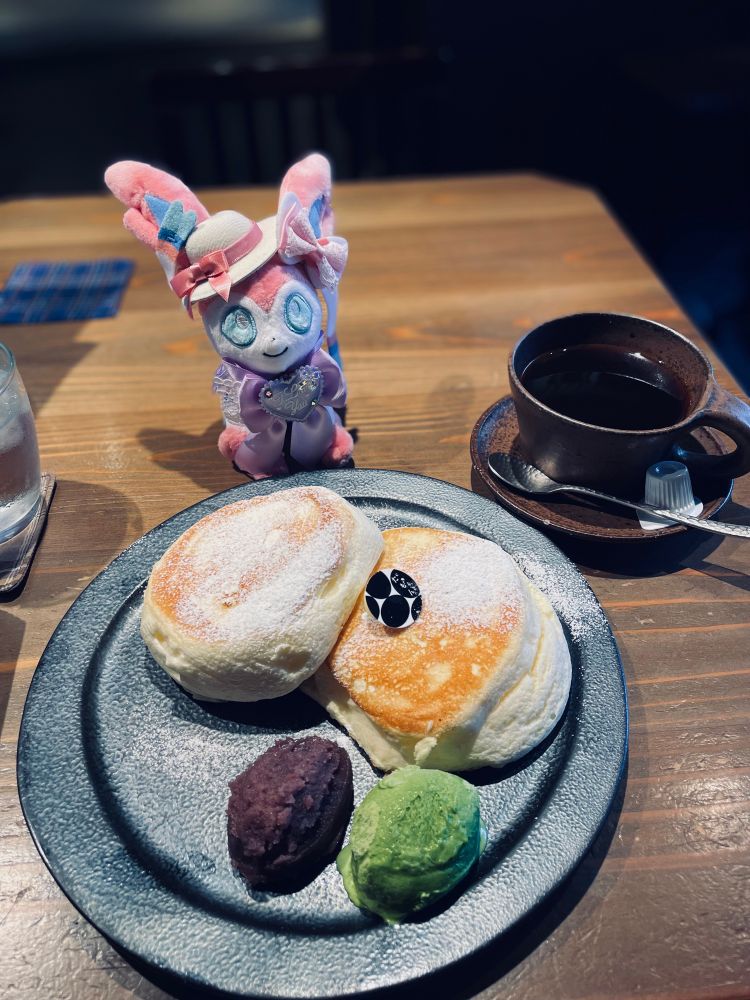 米粉のふわふわパンケーキがあんことめちゃくちゃ合う…!おみやげにバームクーヘンもらっちゃいました🙏