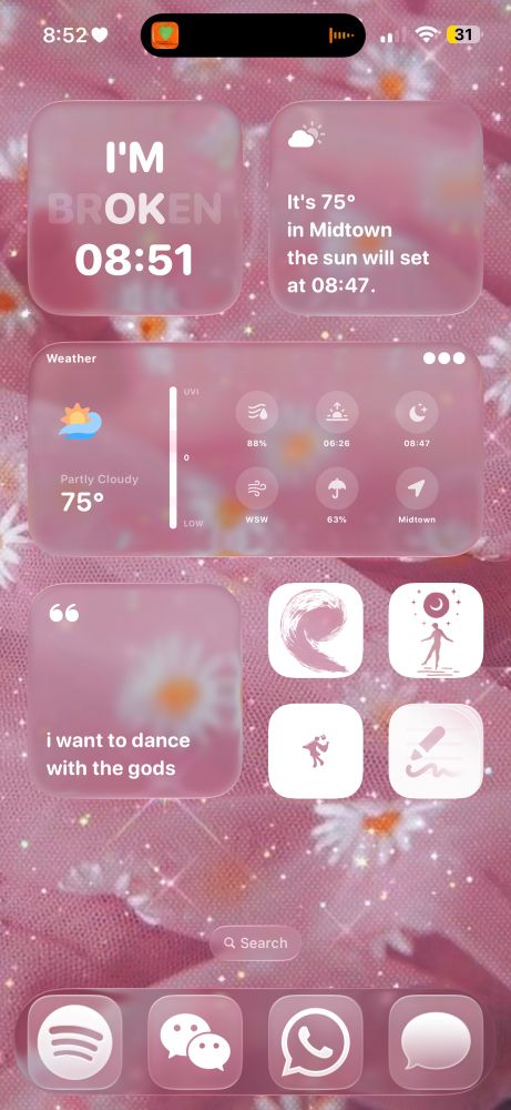 Does anyone else customize their phone's home screen? I am obsessed lol. This is my set up right now ☺️🧚🏻‍♀️💕