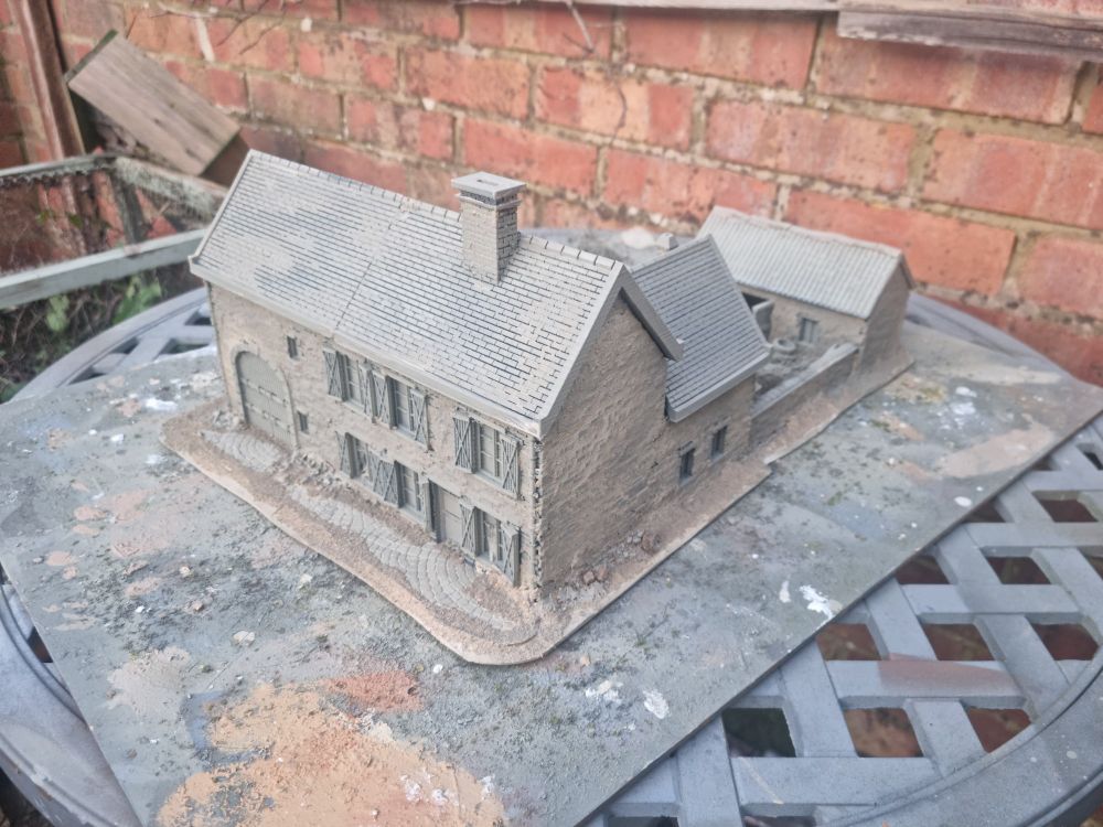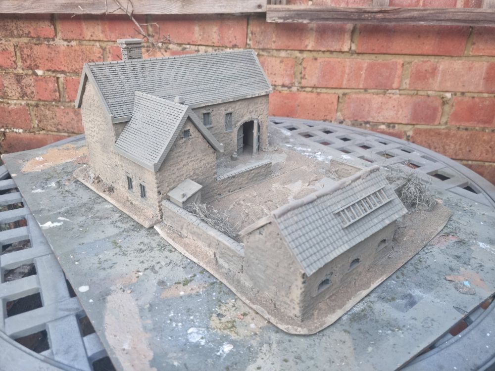 Got a game with @hutchinlondon.bsky.social in a week or so, so thought I'd make a farm to fight over. 3d design and print by @tabletopstudios.bsky.social