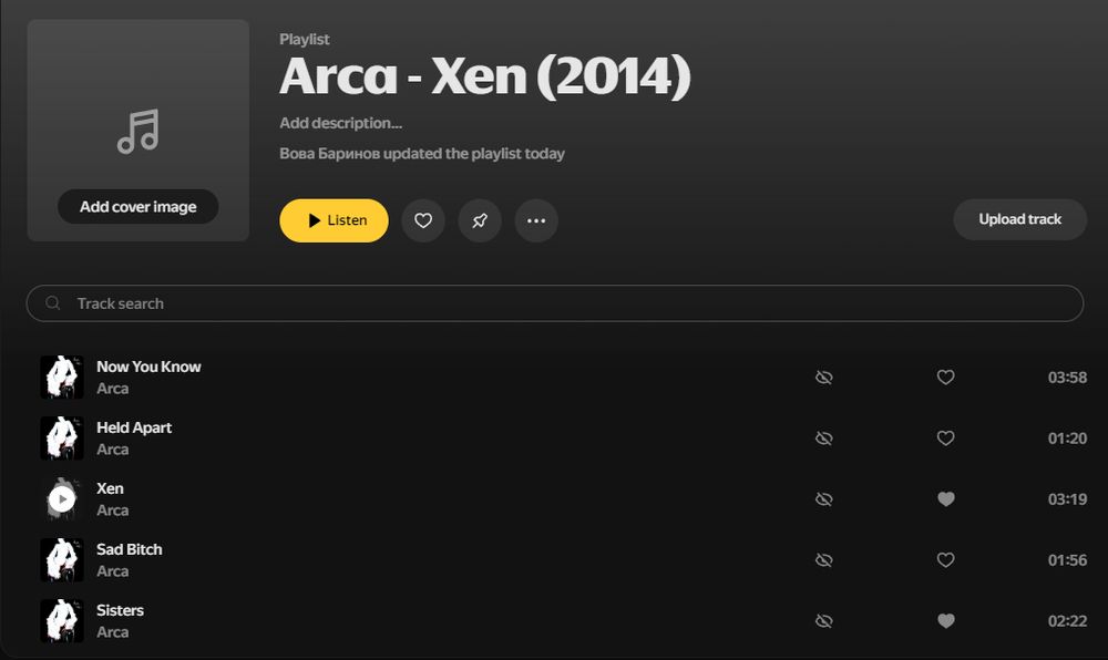and for some fucking reason i can't upload an album art for Arca - Xen even when i blurred it with ps, but that titty image still shows up in tracks