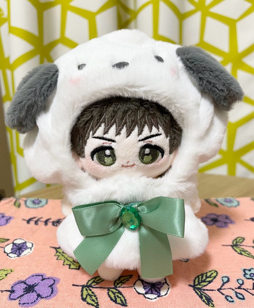 ぽちゃこのかぶりものを着せた☺️ちょいデカだけどまぁ良し☺️流ぬいのためにくろみも買ったよ