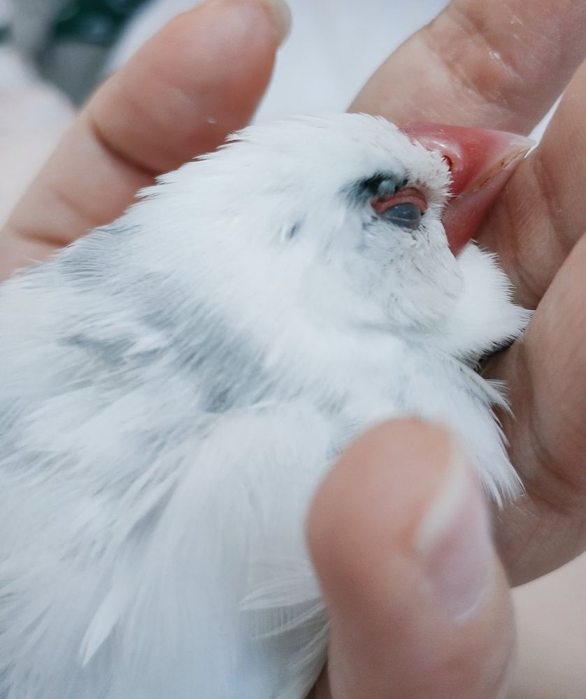羽を膨らましてしんどそうだったけど、がんばってケージから出てきてわたしの手の中に入ってきてくれたとこ