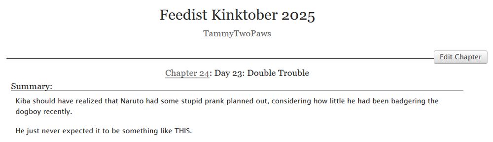 And day 23 is up! This time, Kiba and transformed Akamaru (Or Kibamaru as I call him in this fic) gets a fattening experience due to Naruto and his clones >;3c