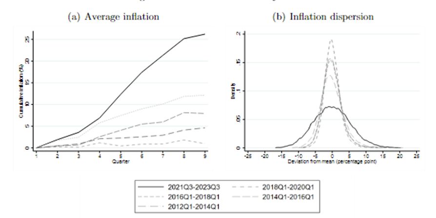 2/ We look at the period September 21 to September 23 using detailed data on grocery purchases. Relative to the past, grocery price inflation was very high. There were also large differences in the inflation different households experienced according to what they bought.