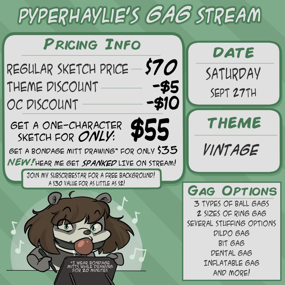 Check out the deets on https://www.deviantart.com/pyperhaylie/art/Gag-Stream-Sept-27th-1011675874