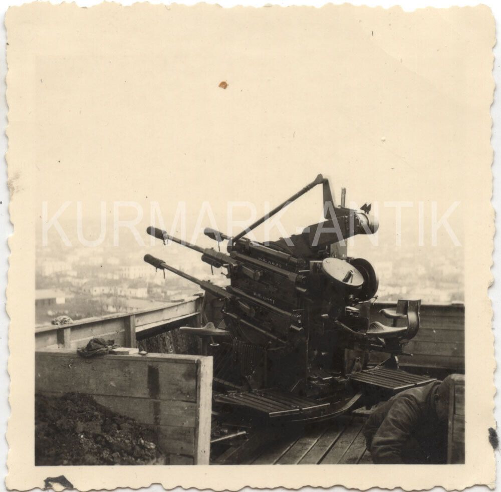 画像は高射砲陣地に据え付けられた2cm Flakvierling 38。いわゆる4連装の対空機関砲ですね。