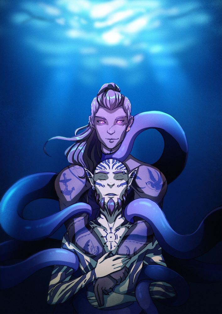 On a whim I made a semi-monster Zoraal Ja design once, where he survived his trial, but got physically changed. It grew into a whole AU and a friend started shipping one of his OCs with this version of Zoraal in particular, and then... this happened.