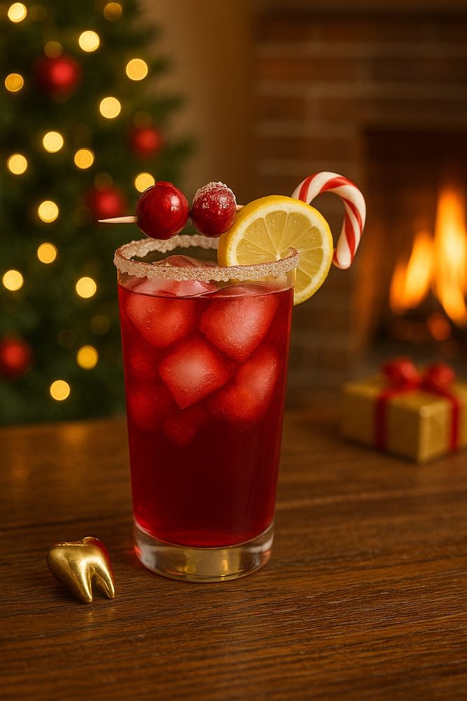 If Kevin McCallister mixed a drink, this would be it: a tart cranberry hibiscus sparkle with lemon, vanilla, a hint of holiday chaos, and a candycane finish. Perfect for sipping while outsmarting the Wet Bandits.