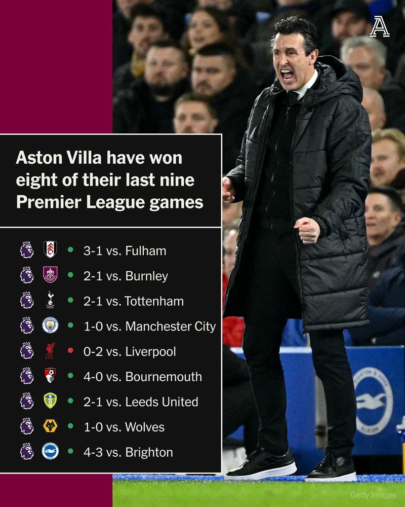 After three points from their first five games, Unai Emery has guided his side to eight wins in their last nine league games.