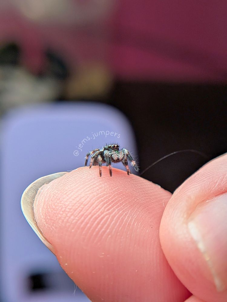 Most of them are now around i4 and getting their colours. We believe the one pictured is a boy 😍 they should be ready in early July. If you're interested in adopting one of these cuties, please pop us a DM 💙 #jumpingspider #cute #petspider