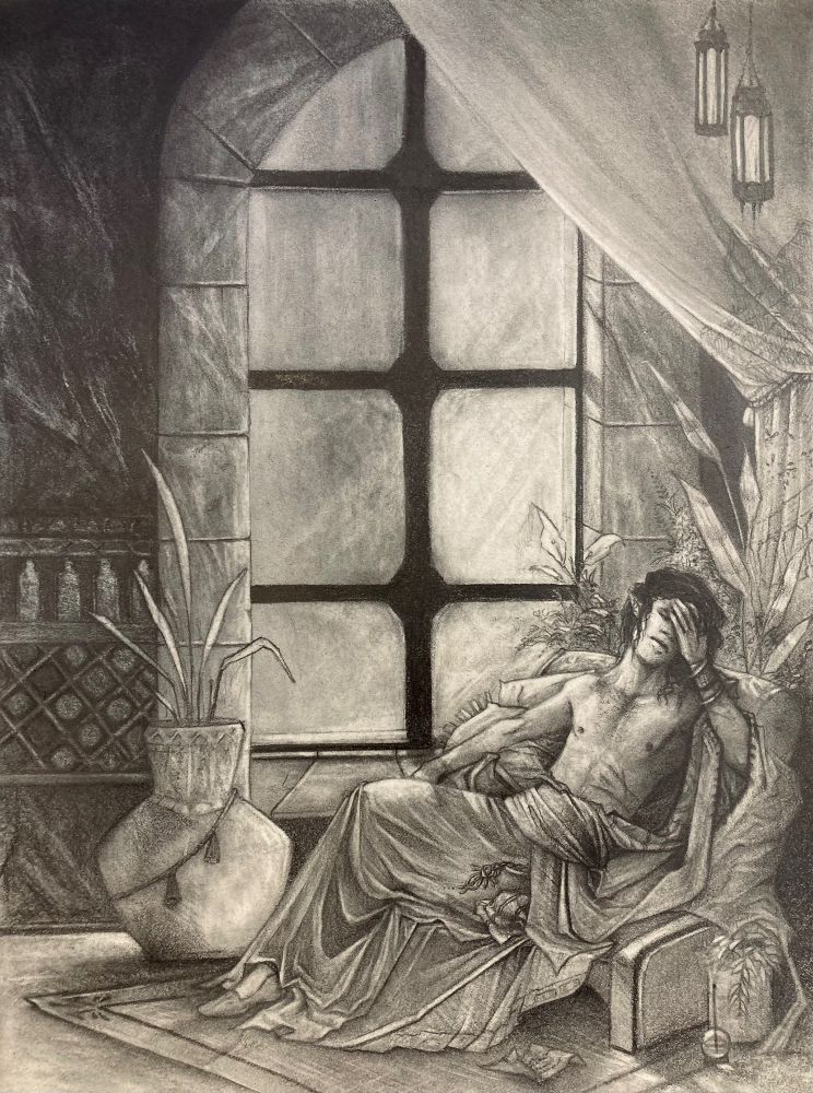 Tzuku taking a moment to rest with Sil quietly guarding. this will eventually be painted.