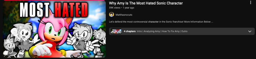 In the anime Sonic X, Amy wasn't portrayed like how she was in the games. She was instead portrayed as this hotheaded, very bossy and stubborn character. As result, Sonic Team put this personality into the games which sadly was not well received & hated by fans (6/?)