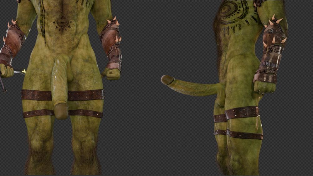 Been working on this fella for the BG3 babes. Haven't seen animations of them with an orc yet, so I thought, why not.