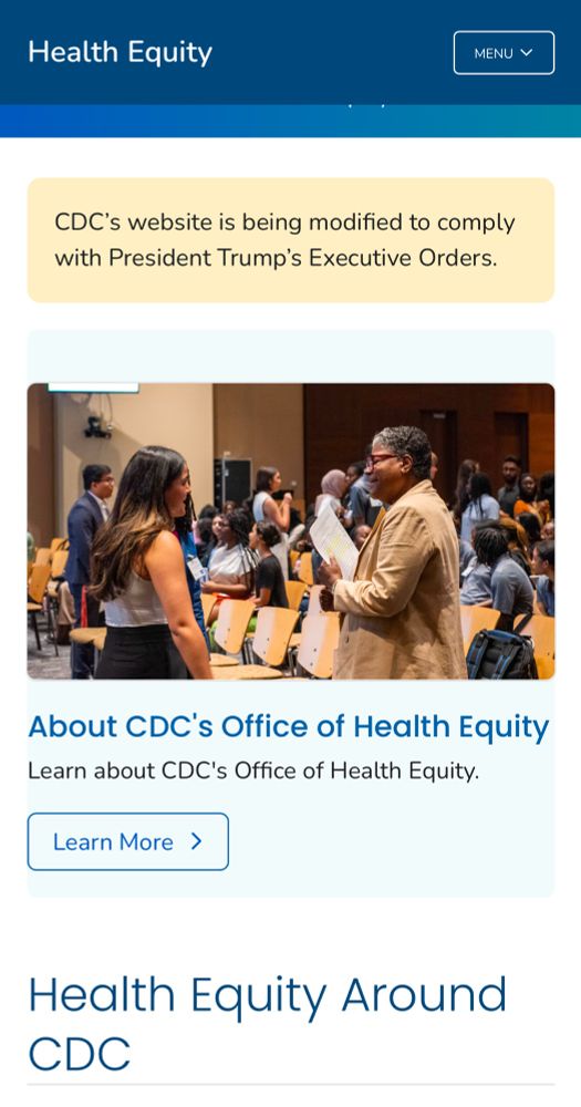 Checking things for myself by searching on cdc website: “transgender” - all I clicked on led to 404 errors. “Abortion” only offered surveillance report results and also asked if I meant “adoption.” “Health equity” page = ominous message. “ “Black men’s health” article on disparities was missing. 😳😬😰