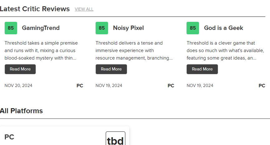 Hoping for a 4th Metacritic review, just to have an actual score on that website.