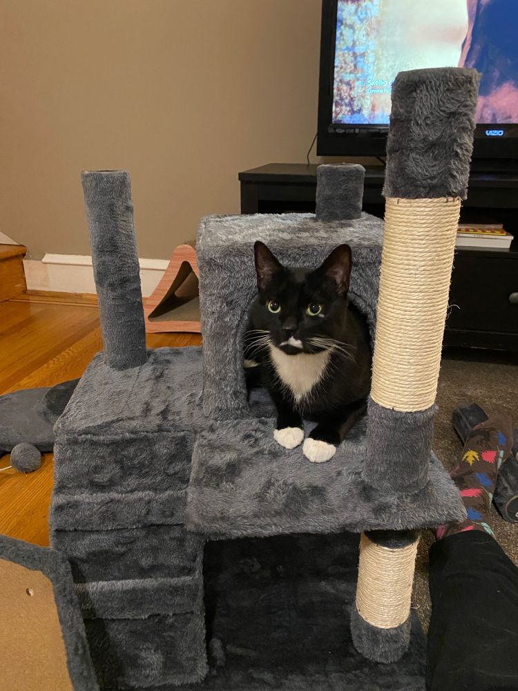 So I got a cat tree for the boys. I had help.