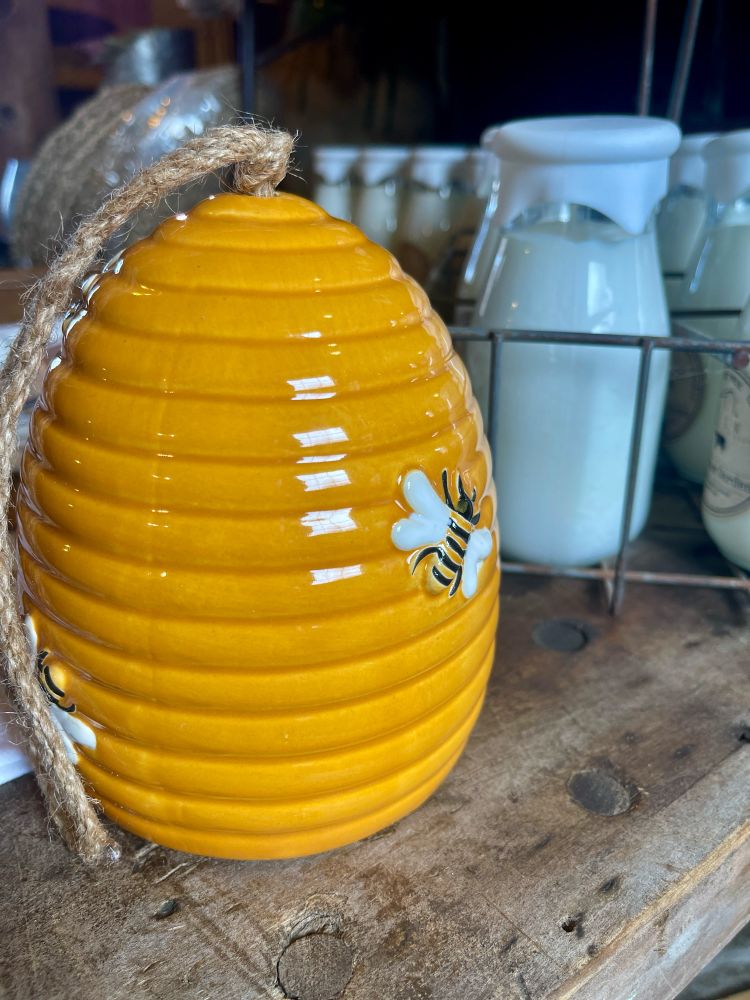 2 now available. These super cute ceramic beehive bird house! Just in time for spring. Snag them up in store or on our website: www.theolde1840.com